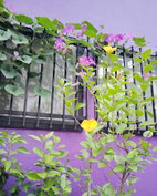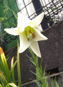 お花にお水をあげて、伸びたトケイソウを切った。午後にまた水やり。