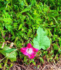 今年、初めてのたったひとつ咲いた朝顔が、なんと青虫に食われていた。