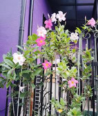 2階の物干し台からでも、かわいいピンクの花びらが確認された。近づいてみたら、あーあ。