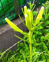 留守の間に百合が咲いてしまうかも。脱色液を作ってから、刷毛が見当たらないことに気がついた。